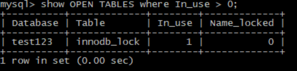 查看哪些表在使用中,In_use列表示有多少线程正在使用某张表,Name_locked表示表名是否被锁,这一般发生在Drop或Rename命令操作这张表时。所以这条命令不能帮助解答我们常见的问题:当前某张表是否有死锁,谁拥有表上的这个锁等。