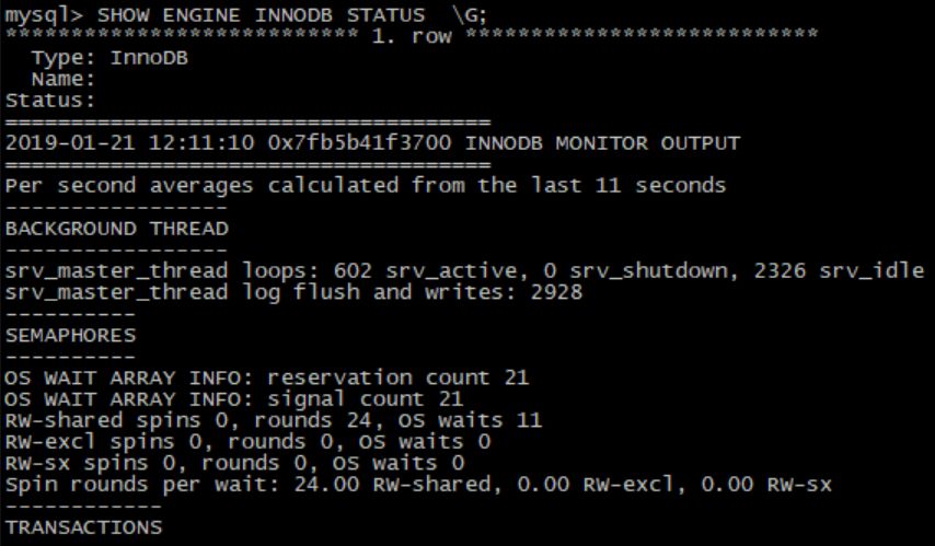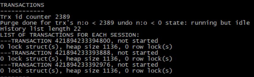 包含Innodb 事务(transactions)的统计信息,还有当前活动的事务列表。