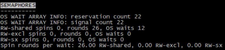 OS WAIT ARRAY INFO 操作系统等待数组的信息,它是一个插槽数组,innodb使用了多少次操作系统的等待