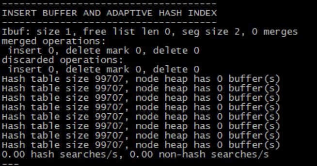 Hash table:显示了hash table的一些信息最后一行显示了每秒进行了多少次hash搜索,以及非hash搜索
