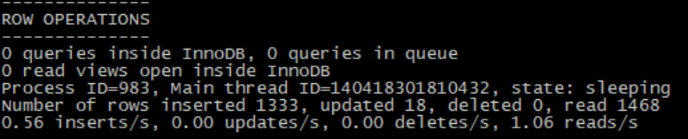 0 queries inside InnoDB, 0 queries in queue:显示了有多少线程在Innodb内核