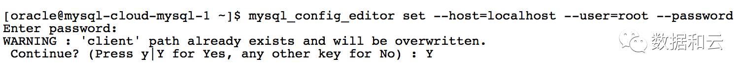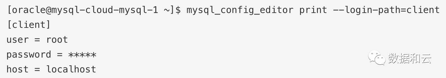 创建Login Path,仍然输入上述一样的密码[oracle@mysql-cloud-mysql-1 ~]$ mysql_config_editor set --host=localhost --user=root --password