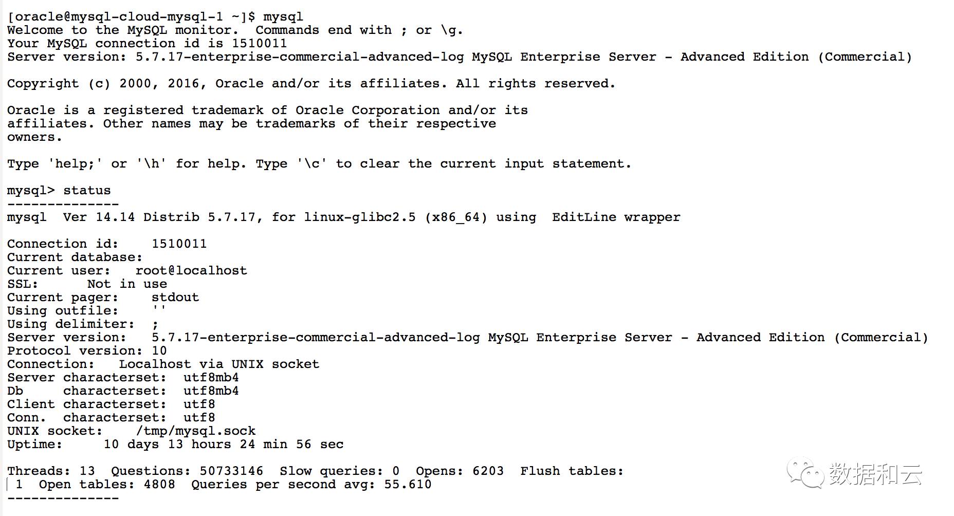 ssh -i id_rsa_oracle_cloud_enmotech opc@your_host_ip登录到主机以后,屏幕欢迎词是个小惊喜,Oracle贴心得显示了MySQL运行状态和存储使用量的提示。