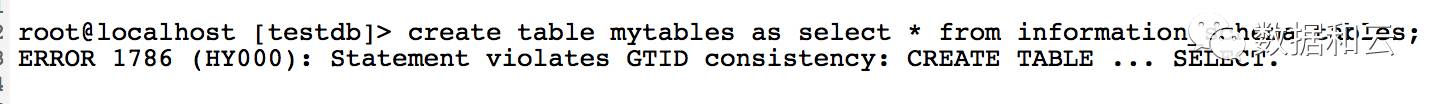 2. 尝试直接CTAS一张测试表,在enforce_gtid_consistency=ON时会报1786错误,这是GTID特性决定的。