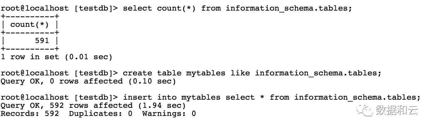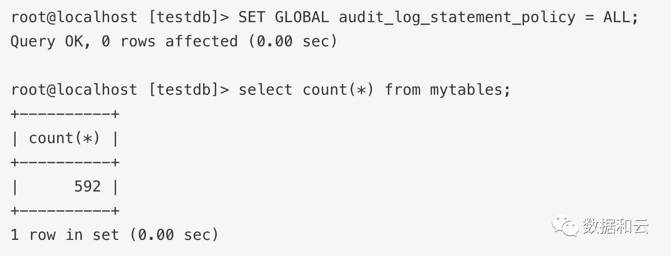 3. 下面的三条语句,select,create table,insert均没有在audit.log中记录下来。