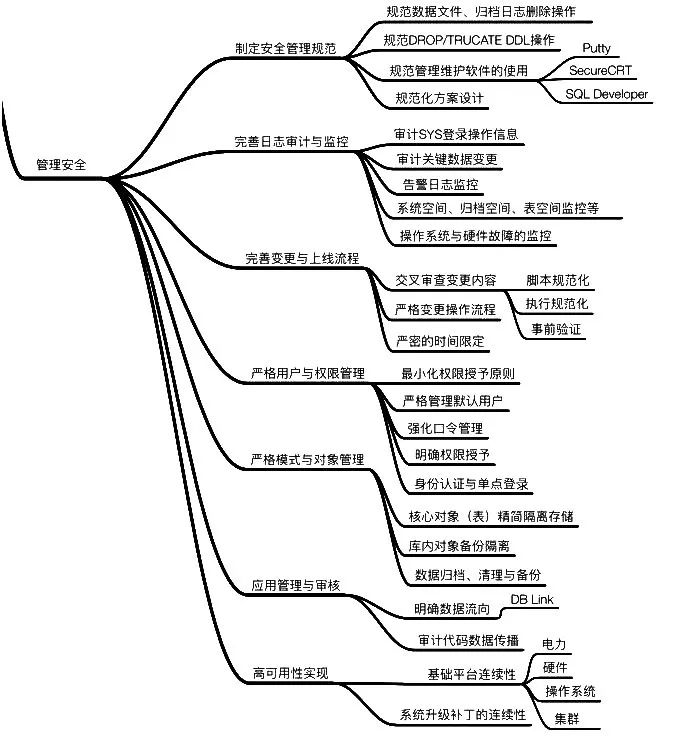 下图列举了管理安全范畴中可能涉及的诸多方面。