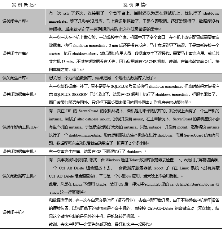 很多DBA还经历过误操作关闭主机或生产库的情况,这种误操作绝对是刻骨铭心的,往往一个回车键按下去,就为时已晚。