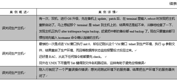 在企业数据环境中,已经有很多DBA因为疏忽而遭受了惨痛的教训。了解和学习这些案例,可以帮助我们熟悉常见的错误种类和错误条件,进而增强规范意识、建立约束制度及制定防范措施,规避和减少技术风险,保障数据环境的安全运行。