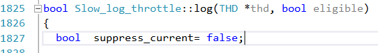 我们看到后面其实还有个suppress_logging,这个函数用来控制不走索引的语句阈值之外的语句不被记录,如果不走索引的查询都记录到慢日志中会造成慢日志增长过快,suppress_logging用于设置一个阈值(log_throttle_queries_not_using_indexes参数值),低于这个阈值数目的查询会将完整信息进行记录,高于阈值的只记录总的执行信息而不记录每一条执行的细节。再来看看suppress_logging的实现: