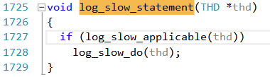 我们可以很容易看到log_slow_do()函数用于慢日志的记录,而if语句中的log_slow_applicable()函数则用来判断某个语句是否是慢日志,那么这个函数就很重要了。现在我们来具体看看这个函数。