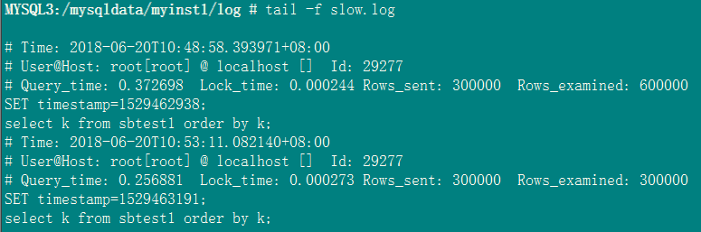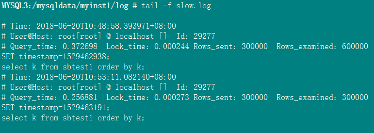 下面对slow log的机制进行实验验证(使用sbtest1表):