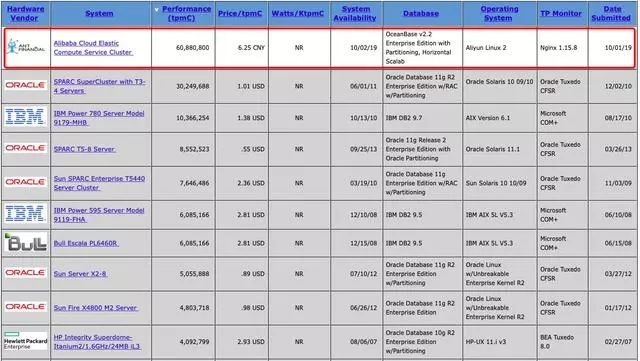 10月2日,据权威机构国际事务处理性能委员会(TPC,Transaction Processing Performance Council)官网披露,中国蚂蚁金服自主研发的金融级分布式关系数据库OceanBase,在被誉为“数据库领域世界杯”的TPC-C基准测试中,打破了由美国公司Oracle(甲骨文)保持了9年之久的世界记录,成为首个登顶该榜单的中国数据库产品。