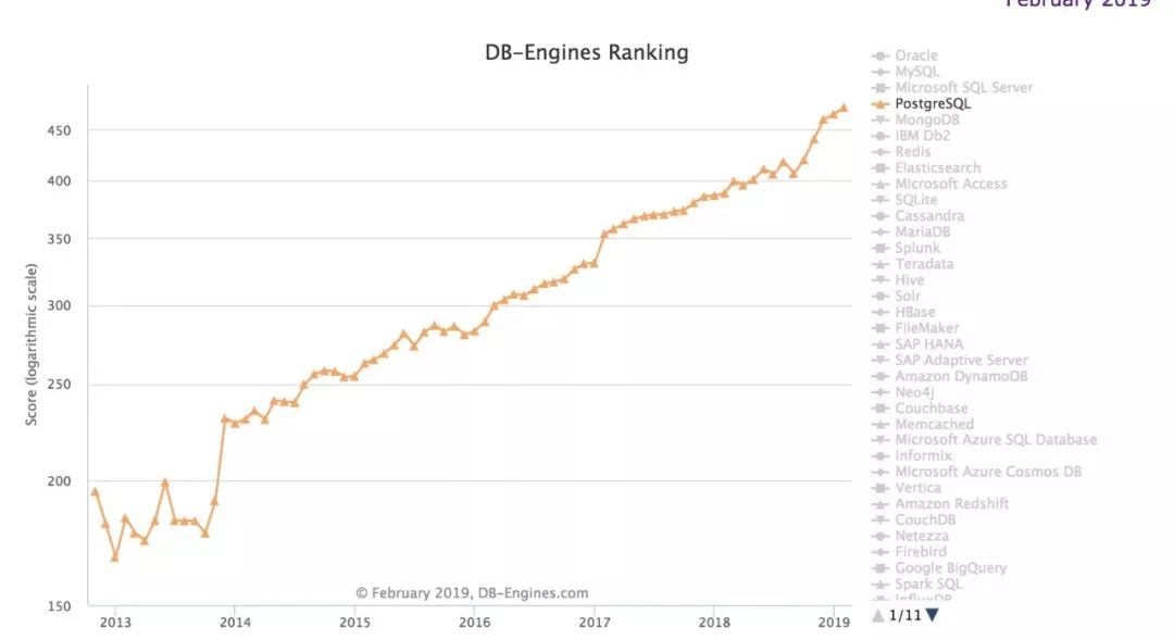 此外在这个表单中非常值得注意的是环比数据,再次浏览一下这个列表,可以注意到 MySQL 和 Microsoft SQL Sever 环比都下降了 80 分以上,Oracle 下降了约 40分,这些分数几乎都在后来者瓜分,PostgreSQL 环比增长了 85.15 分,恰好和 MySQL 的失分相同,按照这个趋势,数据库领域很快将会从 三强鼎立 进化到 春秋五霸 时代。