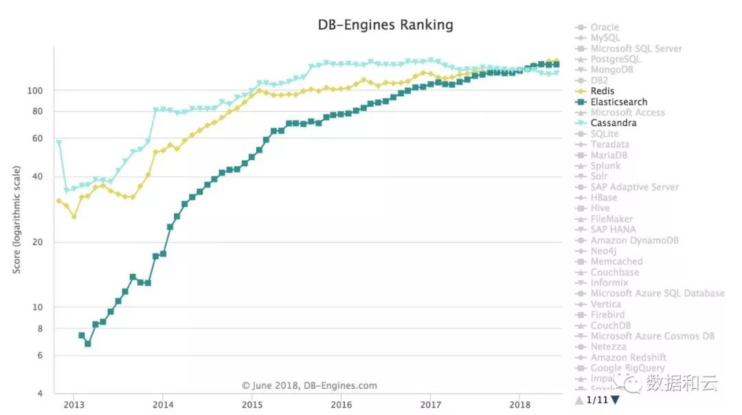 在第三梯队中,Redis ,Elasticsearch ,Cassandra 在实践中广泛采用,地位稳固,是不可忽视的『三朵金花』。