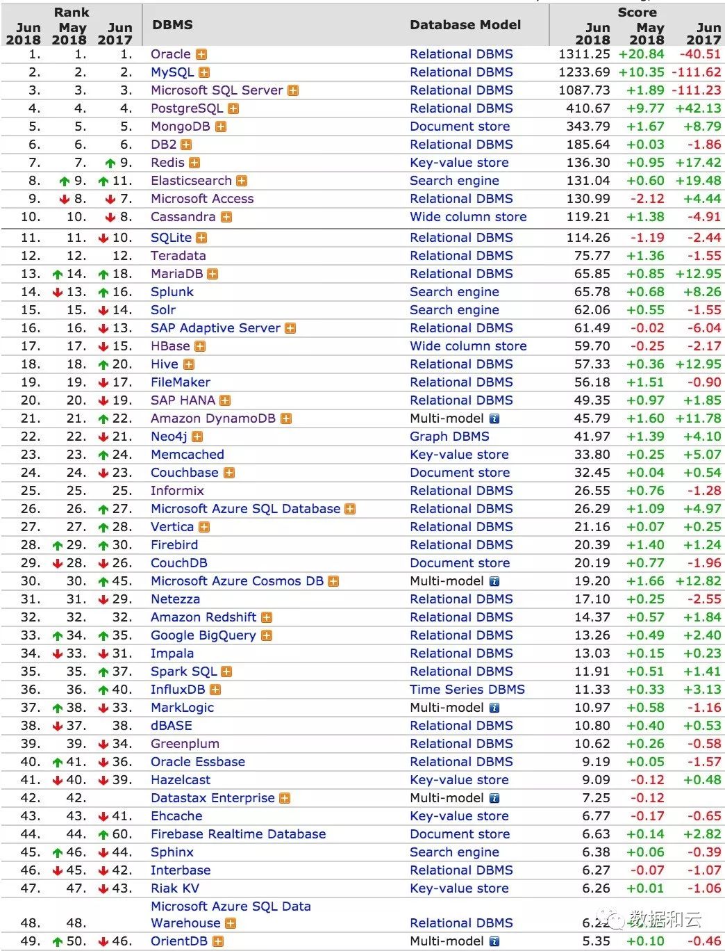 最后占用一点大家的流量,看一看排行榜上前50位的产品,Oracle 一个月的涨幅大约是 2个 Greenplum: