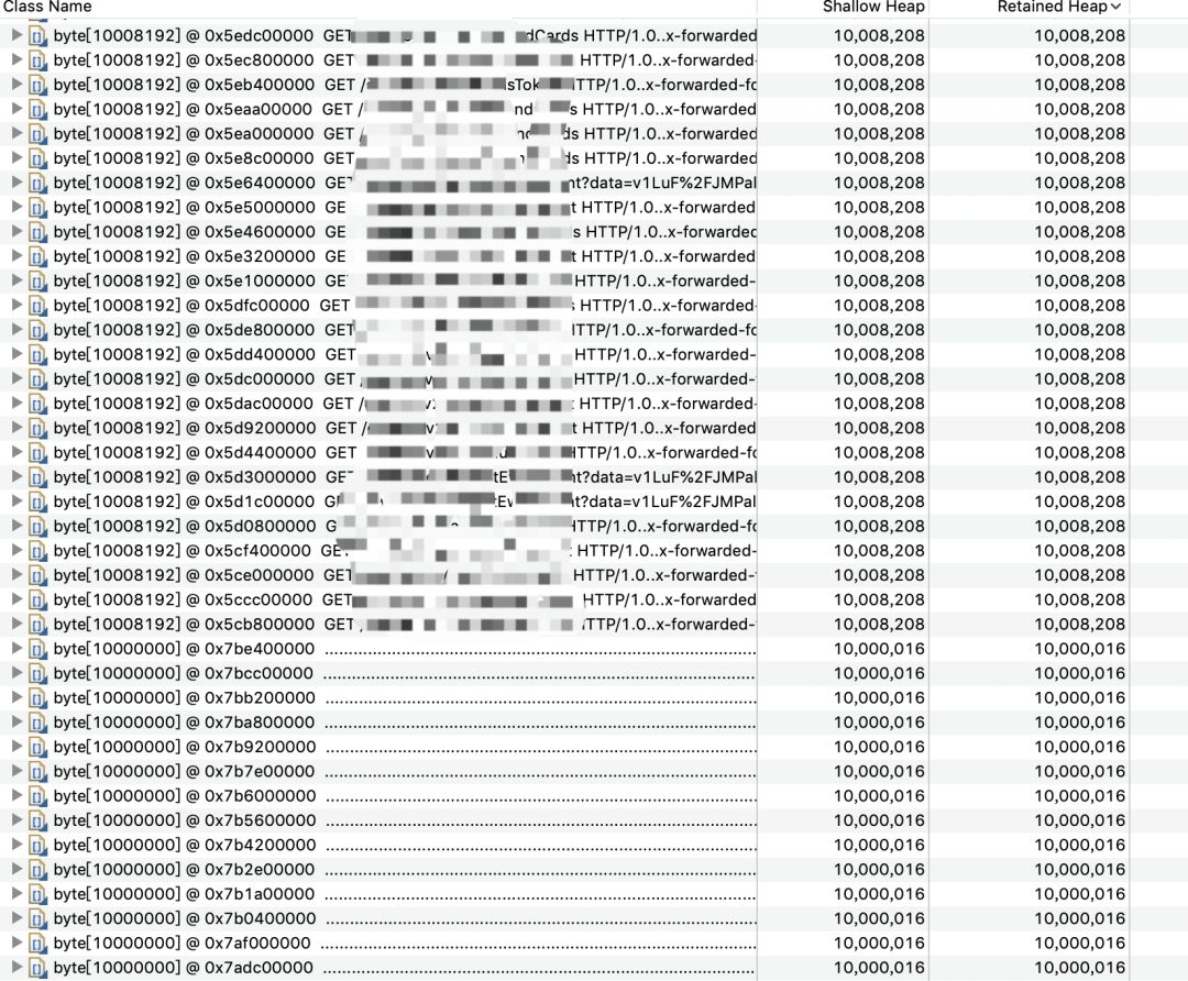 可以看到很明显这和HTTP请求相关,一个数组大概是10M的大小。