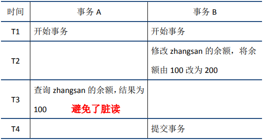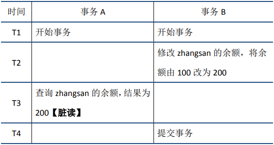 当事务 A 在 T3 时间节点读取 zhangsan 的余额时,会发现数据已被其他事务修改,且状态为未提交。