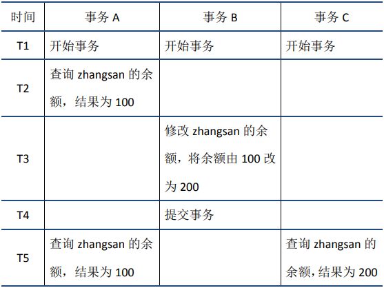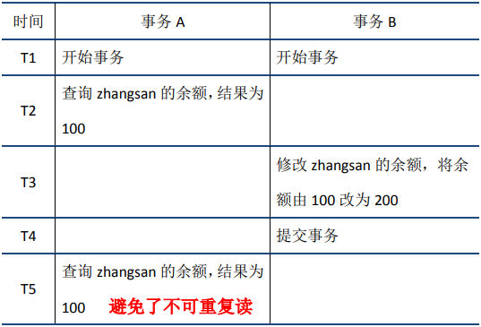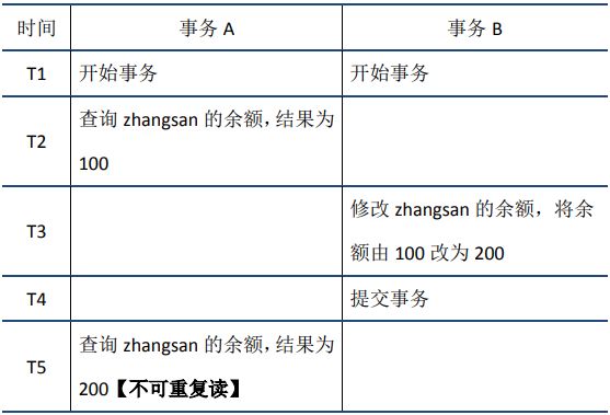 ②不可重复读:在事务 A 中先后两次读取同一个数据,两次读取的结果不一样,这种现象称为不可重复读。