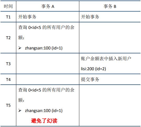 当事务 A 在 T2 节点第一次读取 0<id<5 数据时,标记的不只是 id=1 的数据,而是将范围(0,5)进行了标记。