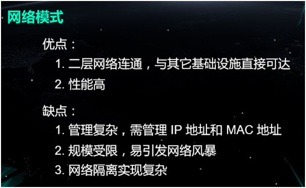 由于整体处于网络大二层,一旦系统达到了一定规模,网络中的 ARP 包会产生网络广播风暴,甚至会偶发出现 PPS(Package Per Second)过高,网络间歇性不通等奇怪的现象。