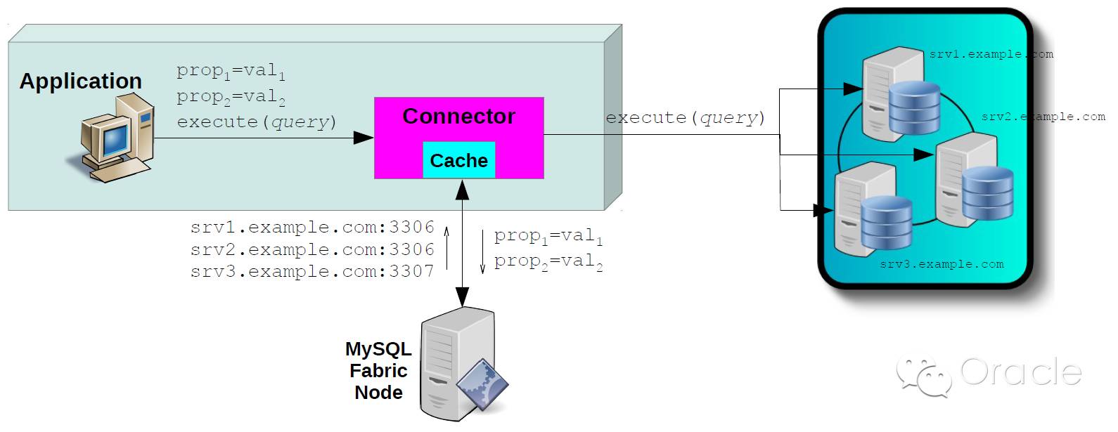 应用都会请求 Fabric 连接器,然后通过使用 XML-RPC 协议访问 Fabric 节点, Fabric 节点依赖于备用存储 (backing store),其实就是 MySQL 实例,存储整个 HA 集群的元数据信息。连接器读取 backing store 的信息,然后将元数据缓存到 cache,这样做的好处就是减少每次建立连接时与管理节点交互所带来的开销。