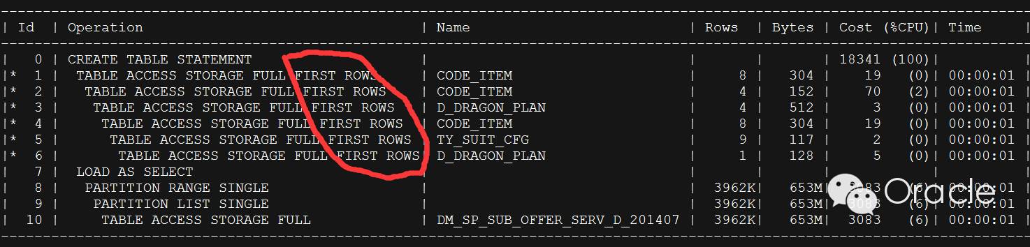 从上面的关键字部分STORAGE FULL FIRST ROWS这部分,我们也可以看到是一个Exadata一体机的环境。