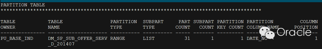 PU_BASE_IND.DM_SP_SUB_OFFER_SERV_D_201407是个分区表,下面查询一下表分区的信息: