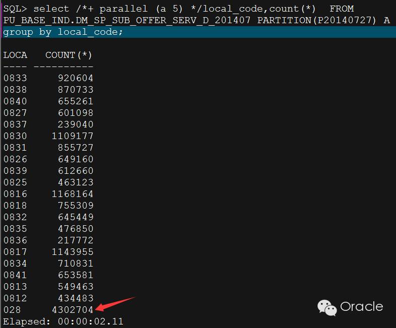 下面查询访问的分区的行数,这里由于是OLAP系统,无统计信息,只能手动运行SQL来查询,如果有统计信息,可以大概根据统计信息来计算,虽然不是很准确,但是我觉得足够我们判断SQL性能了,何况CBO都是基于统计信息的。