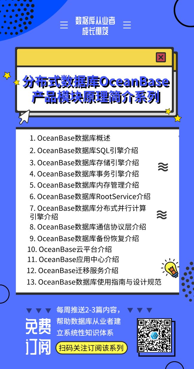 Tips:关注OceanBase公众号回复“产品原理”获取OceanBase产品模块原理简介系列已发布的7篇文章合集(该系列持续更新中)。