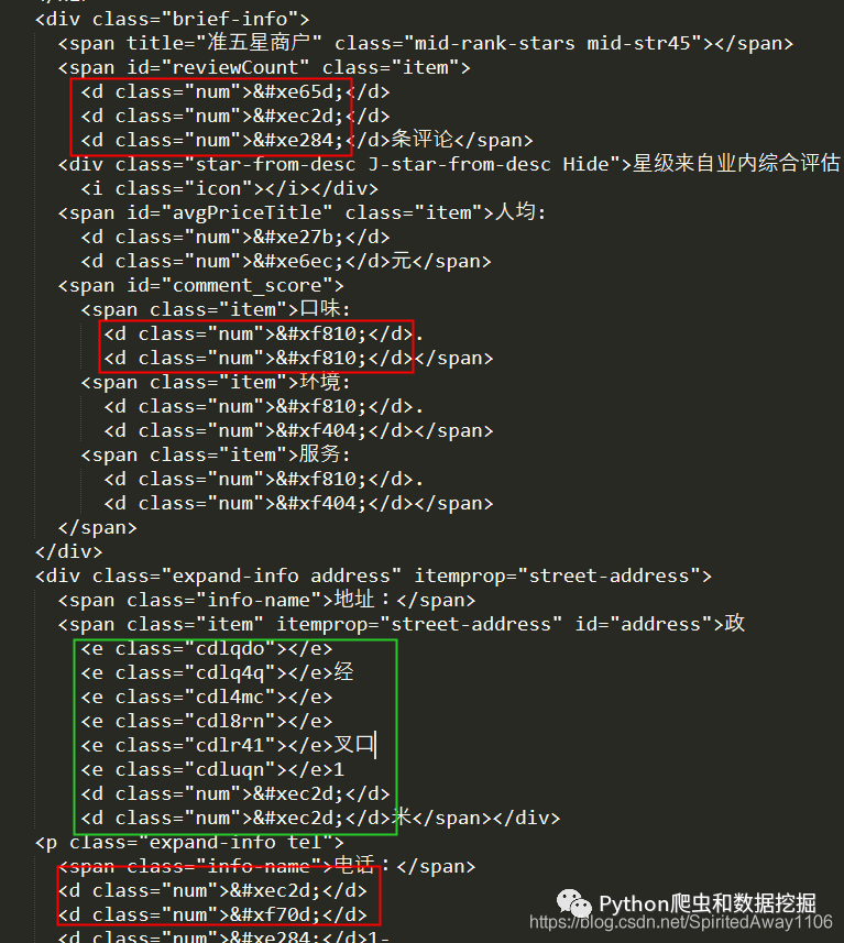 ❝字体库完成解密之后,你会发现,有些数据还是被加密着,比如地址,工作时间,评论中的部分文字也被加密了,且不能被字体库解密,如下图