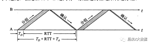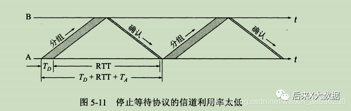 假定A发送分组需要的时间是TD,B发送确认分组需要时间TA。消息往返时间RTT,因此信道的「利用率U=TD/(TD+RTT+TA)」