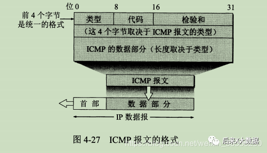 我们之前也说了,IP数据报的传输在网络层是不可靠的,所以在「把ICMP报文装在IP数据报中,发送出去。相当于数据报中有个监视器。」它的格式是下面这样的: