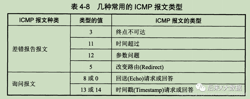 通知出错原因的错误消息(ICMP差错报告报文) 用于诊断的查询消息(ICMP询问报文)