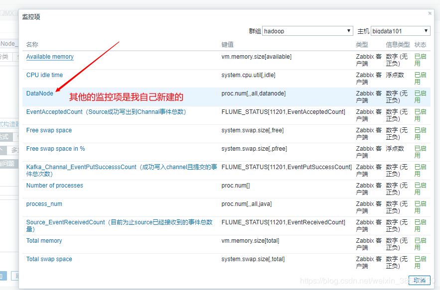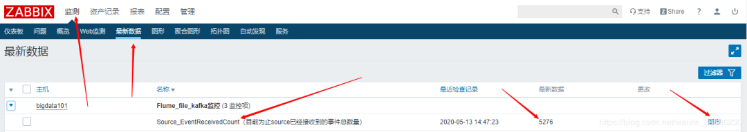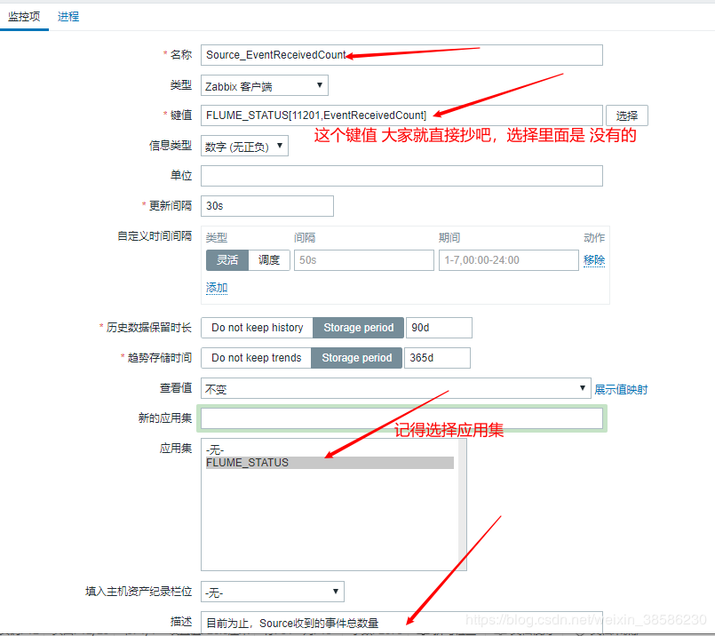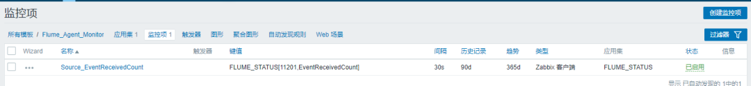 好了,到此,关于flume的单个服务的监控已经搞定了,剩下的大家举一反三,在监控项表格中,找到自己关心的监控项关键词,然后部署就可以了。