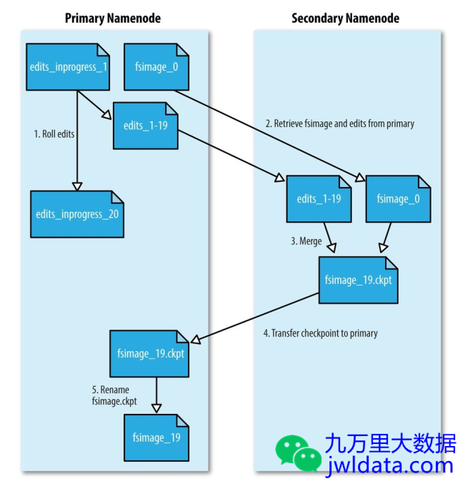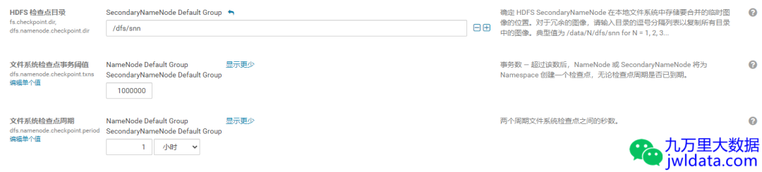 两个参数只要满足其一,就会触发checkpoint过程。默认情况下,SNN每隔1小时进行一次checkpoint,但如果还没到1小时,距离上一次checkpoint后事务累积已经超过了1百万,就会立刻触发一次checkpoint。