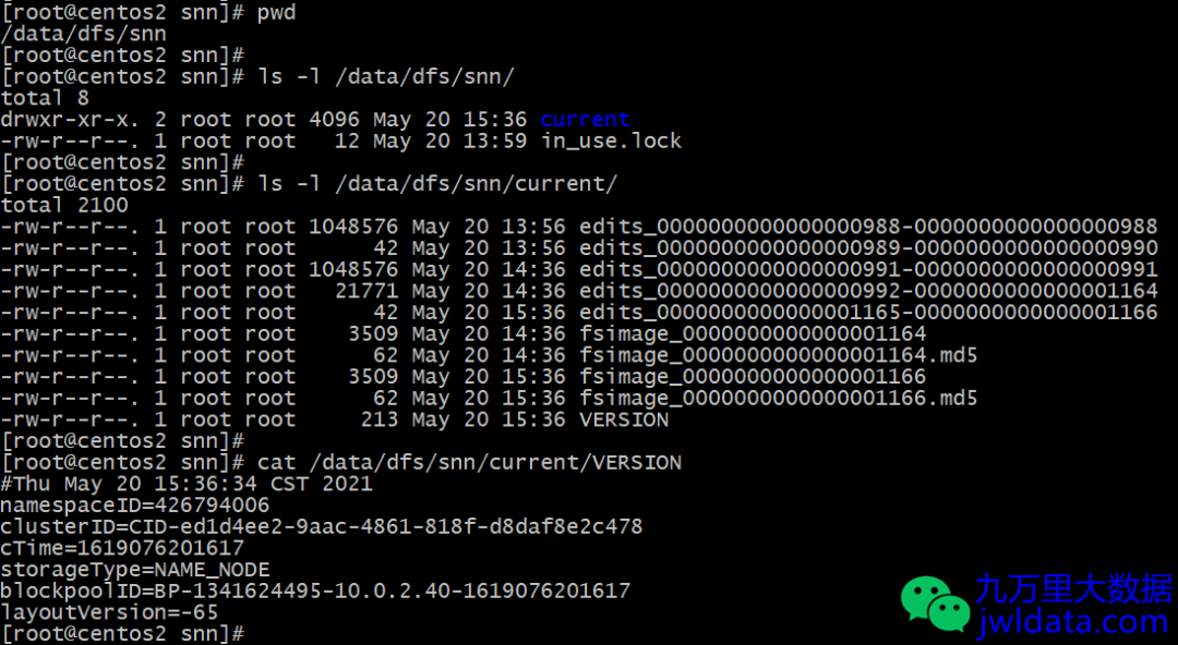 SecondaryNameNode的目录结构如下,可以与前面NameNode的目录结构比对一下,加深认识。