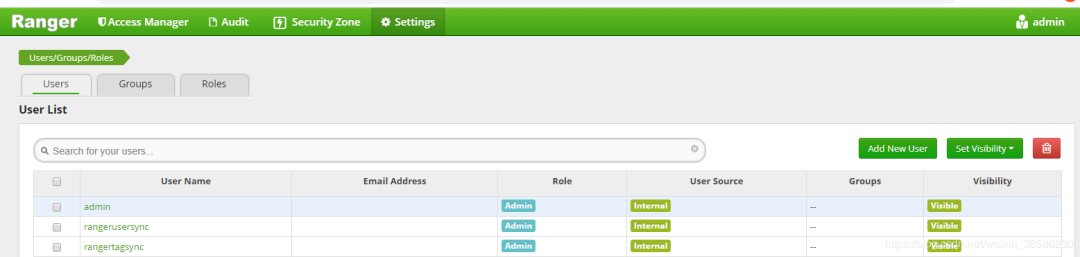 验证是否安装成功:在Ranger控制台可以看到users中同步的用户信息。