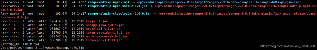 在这里插入图片描述 会发现share/hadoop/hdfs/lib 下有ranger-hdfs开头的软连接