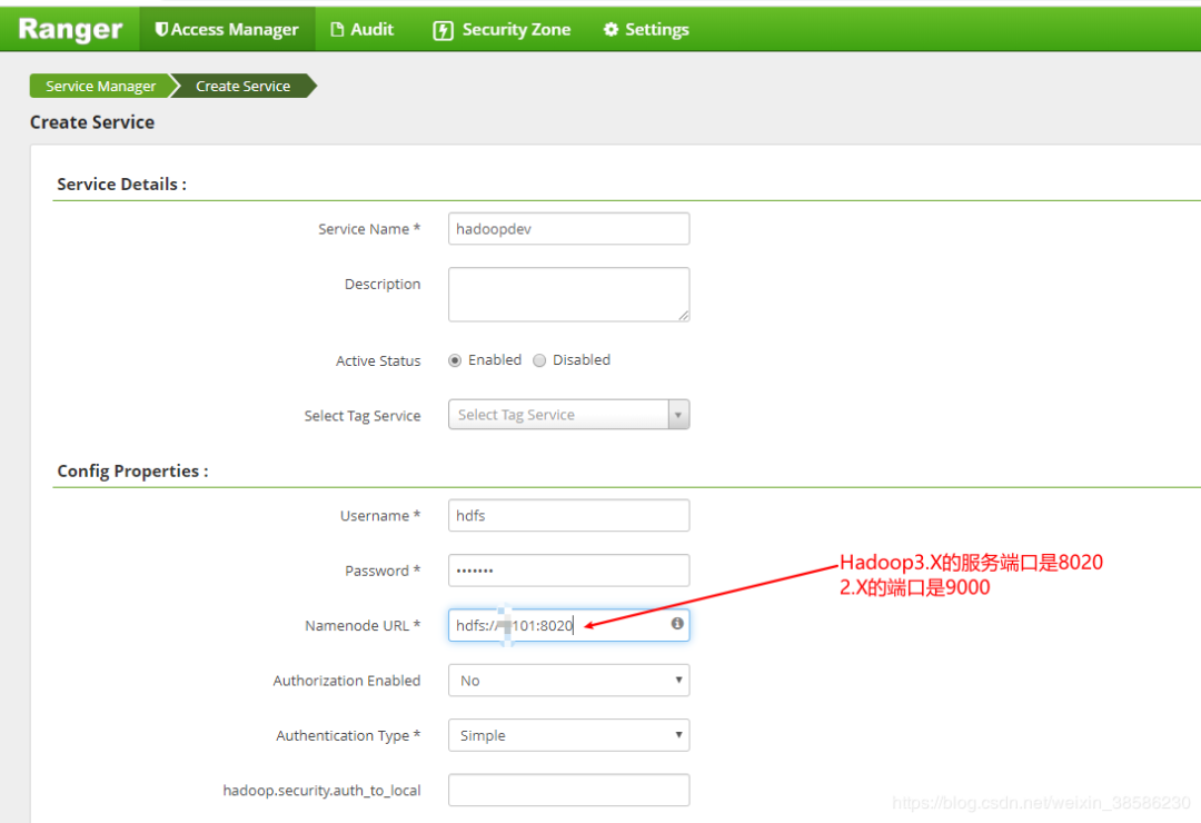 7POLICY_MGR_URL=http://hadoop101:6080 REPOSITORY_NAME=hadoopdev COMPONENT_INSTALL_DIR_NAME=/opt/module/hadoop-3.1.3(自己的hadoop安装目录)