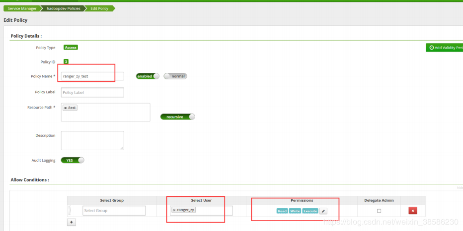 在ranger中对此ranger_zy用户进行权限操控