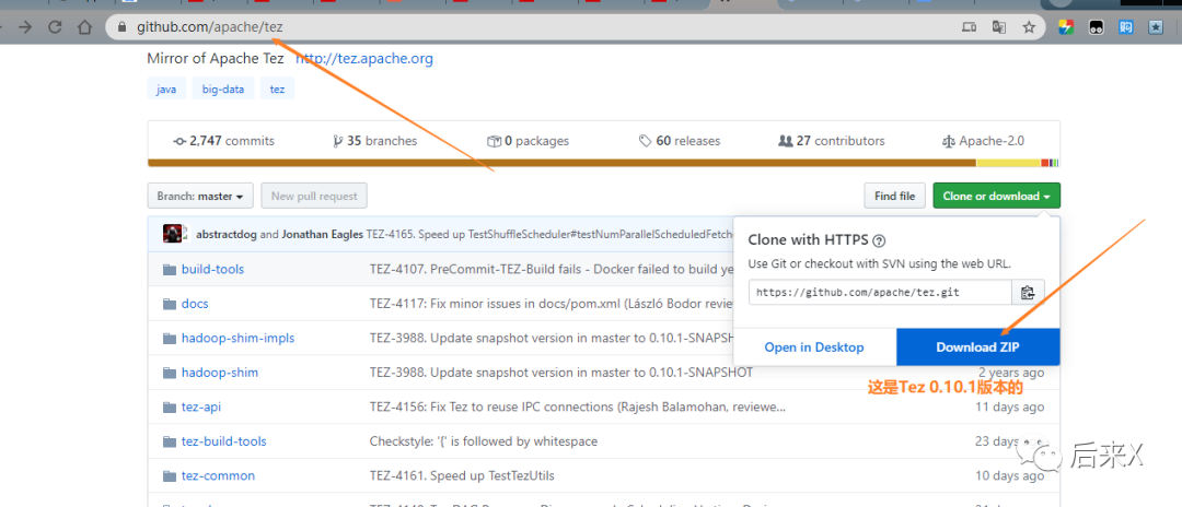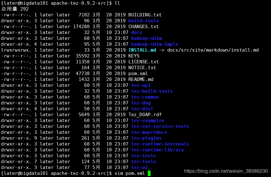 1.下载tez的src.tar.gz源码包,附官方下载链接(http://tez.apache.org/releases/index.html),下载之后上传到linux系统中,并且解压出来,我以下载的是 0.9.2举例,新版的tez0.10.1需要在github下载,附链接(https://github.com/apache/tez)