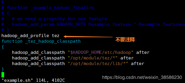 hadoop_add_profile tezfunction _tez_hadoop_classpath{hadoop_add_classpath "$HADOOP_HOME/etc/hadoop" afterhadoop_add_classpath "/opt/module/tez/*" afterhadoop_add_classpath "/opt/module/tez/lib/*" after}