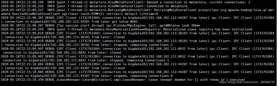 9.到这里就再开始测试hive中能不能使用tez引擎