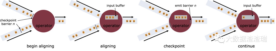 3、 Checkpoint 时,需要将 barrier 之后的数据缓存到 BufferStorage 中,等 barrier 对齐以后,需要处理 BufferStorage 中缓存的数据。