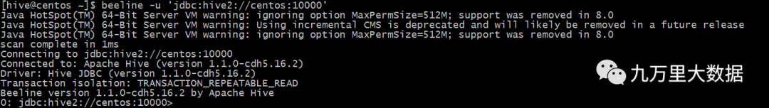 在hive1.1.0中使用Hive CLI会提示WARNING: Hive CLI is deprecated and migration to Beeline is recommended.