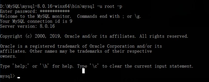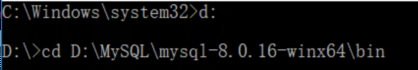 首先进入到你的安装目录,我这里是D盘,D:\MySQL\mysql-8.0.16-winx64\bin,接着在此目录下进行相应的过程: