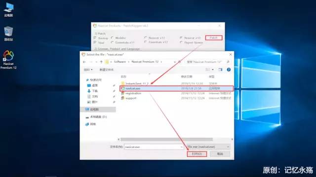 找到Navicat Premium 12安装路径下的navicat.exe,选中并点击打开: