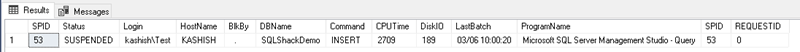 执行SQL后,我们可以使用 sp_who2 ‘SPID’ 命令检查其状态。