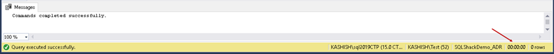 现在,运行上面提到的SQL命令。在下面的屏幕截图中,我们可以看到为 SQLShackDemo_ADR 数据库启用了加速数据库恢复。