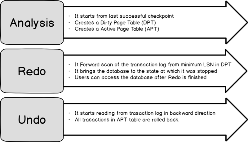 下图(参考 – Microsoft Docs)显示了整个数据库的恢复过程。
